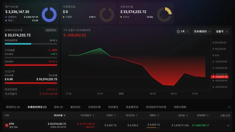 On the 30th, on-chain analyst ai_9684xtpa said via X (formerly Twitter): "A whale investor who shorted Ethereum (ETH) 20x is recording losses of $5.19 million," and "He is still maintaining the position."