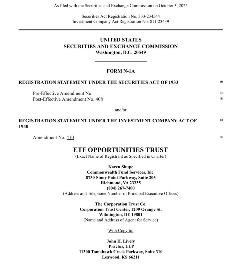 The ETF is part of its 'ETF Opportunities Trust' portfolio and holds major crypto assets such as Chainlink (LINK), Sui (SUI), and Hyperliquid (HYPE).