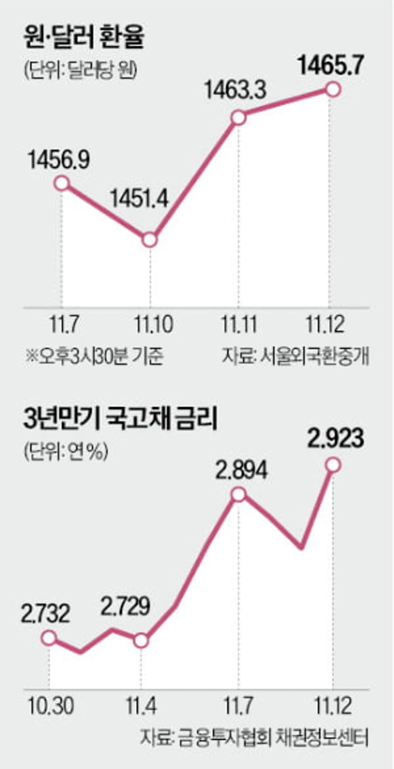 원·달러 환율이 12일 장중 1470원을 터치했다. 외국인 투자금 이탈과 엔화 약세가 원화 가치를 끌어내리면서 지난해 말 비상계엄 선포로 정치적 불확실성이 극대화된 시기의 환율 수준까지 치솟았다. 이창용 한국은행 총재는 "시장이 대외 불확실성에 과도하게 민감하게 반응하고 있다"며 경계감을 드러냈다.