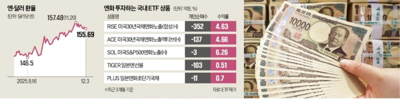 최근 수익률이 반등하자 곧바로 차익 실현에 나서는 투자자도 늘고 있다. 지난 3개월간 개인투자자는 'RISE 미국30년국채엔화노출(합성H)'과 'ACE 미국30년국채엔화노출액티브(H)'에서 각각 352억원, 137억원어치 순매도했다.