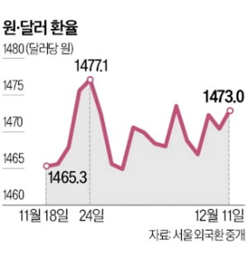 이날 서울외환시장에서 원·달러 환율은 오히려 상승(원화 가치 하락)했다. 전날보다 2원60전 오른 1473원에 주간 거래를 마쳤다. 오전에는 금리 차 축소 등의 영향으로 5원90전 내린 1464원50전에서 출발했지만, 오전 10시께 아시아 장이 열리면서 상승세로 전환됐다. 최근 환율을 저점으로 인식한 달러 매수세 때문으로 시장은 분석했다.
