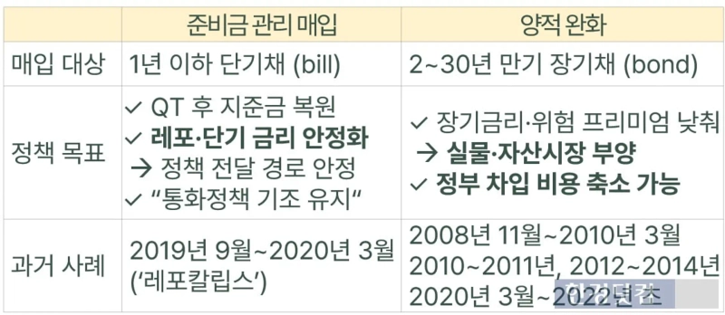RMP와 QE는 모두 Fed가 자산을 매입해 대차대조표를 확대하는 정책입니다. 하지만 그 수단과 목표는 분명 다릅니다.