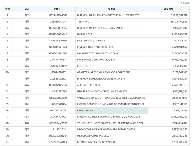 - 디지털자산 트레저리(DAT)와 스테이블코인 관련주가 순매수 상위권을 차지했으며, 비트마인과 서클 등에 많은 자금이 유입됐다고 밝혔다.