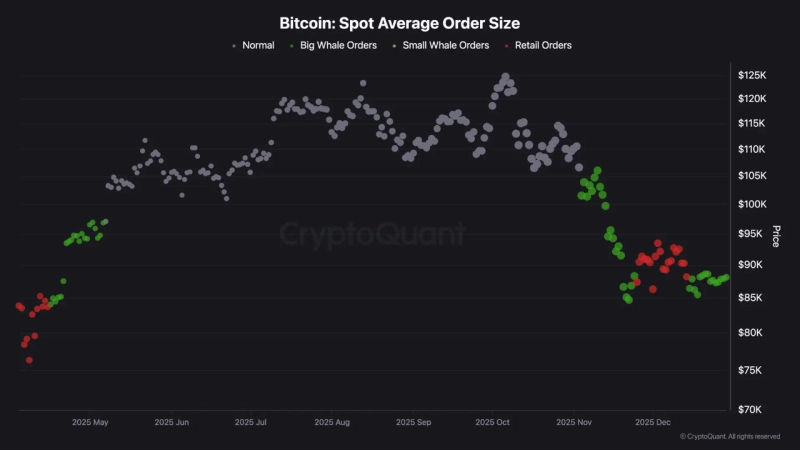 29일 샤얀마켓츠(ShayanMarkets) 분석가는 크립토퀀트 퀵테이크(Quicktake) 리포트에서 "최근 비트코인 현물 평균 주문 규모 데이터에서 고래 규모 주문이 현재 가격대 인근에 집중되고 있다"고 진단했다.