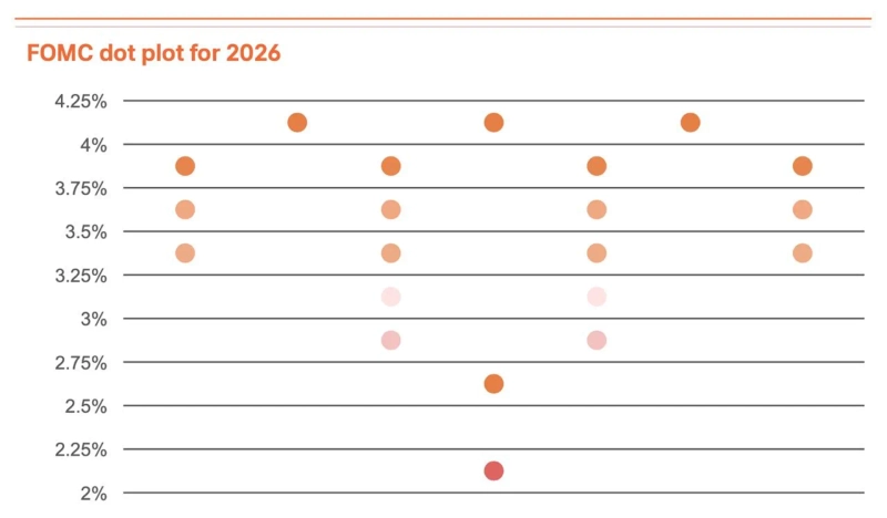 미국 연방준비제도(Fed, 연준)는 2025년 9월부터 12월까지 세 차례에 걸쳐 기준금리를 25bps씩 내렸다. 그 결과 현재 기준금리는 3.50~3.75% 수준이며, 12월 발표된 점도표는 2026년 말 3.4%를 제시했다. 올해 급격한 금리 인하(50bps 이상)는 어렵지만, 5월 파월 의장 임기 종료 후 트럼프 행정부가 금리 인하 성향 인물을 지명할 가능성이 높아 완화 기조 자체는 이어질 전망이다.