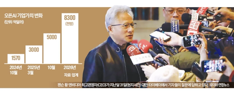 현재 오픈AI는 올 1분기 완료를 목표로 최대 1000억달러(약 145조원)를 조달하는 투자 라운드를 진행 중이다. 조달에 성공한다면 회사의 기업 가치는 최대 8300억달러(약 1224조원)에 이를 전망이다. 마이크로소프트(MS)·아마존 등 빅테크가 이번 시리즈를 위해 지갑을 열 것으로 예상된다. AI 반도체 생태계를 주도하는 엔비디아가 투자를 보류하면 오픈AI의 이번 자금 조달에 적잖은 부담으로 작용할 수 있다는 분석이 나온다.