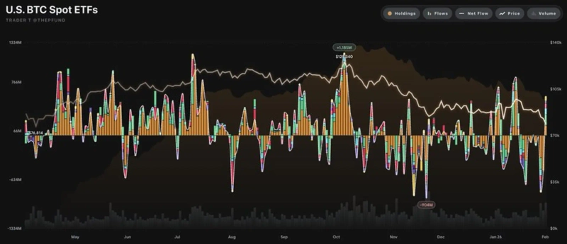 2일(현지시간) 트레이더 T에 따르면 이날 미국 비트코인 현물 ETF 전체 순유입 규모는 약 5억6262만달러(약 8146억원)로 집계됐다. 이는 5거래일만에 순유입 전환이다.