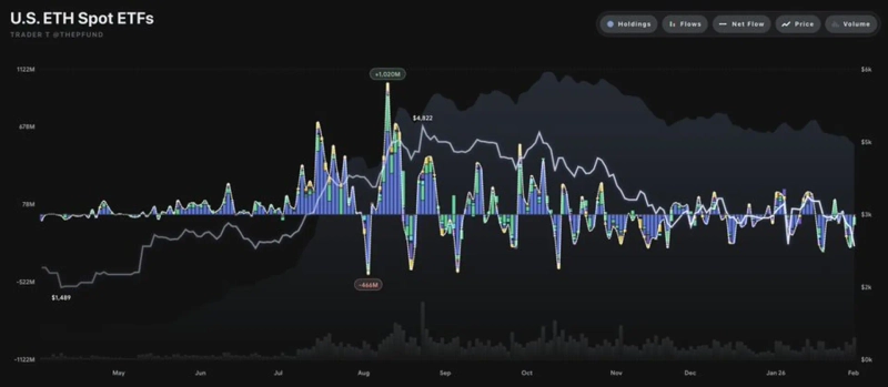 2일(현지시간) 트레이더 T에 따르면 이 날 미국 이더리움 현물 ETF 전체 순유출 규모는 약 1558만달러(약 225억원)로 집계됐다. 이는 3거래일 연속 순유출이다.