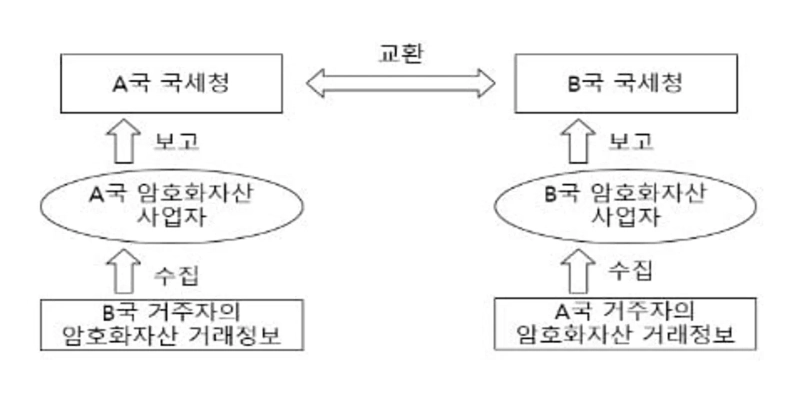 OECD가 주도하여 미국, 영국, 일본, 독일 등 48개국이 참여하는 「OECD 암호화자산 자동정보교환체계(CARF, Crypto-Asset Reporting Framework)」 이행을 위해, 한국 역시 이행규정을 마련하고 2026년부터 본격적인 정보 수집에 착수하였다. 정보 수집 후 2027년부터는 가입국 간 자동적인 정보 교환이 개시될 예정이다. 아울러 국세청은 가상자산 탈세 대응을 위해 '디지털자산총괄과(가칭)' 신설을 추진하고 있다.