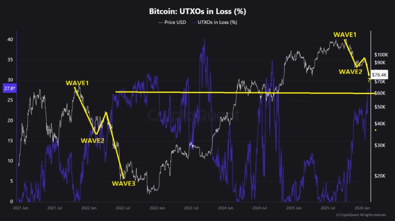 코인드림(CoinDream) 크립토퀀트 기고자는 4일(현지시간) 크립토퀀트를 통해 "현재 시장에서 2022년 5월과 유사한 스트레스 패턴이 나타나고 있다"고 밝혔다. 코인드림은 "손실 상태에 있는 '미사용 거래 출력(UTXO)' 비중이 27~30% 구간으로 진입했다"며 "시장 참여자 상당수가 수익 구간에서 미실현 손실 구간으로 이동했다는 뜻"이라고 했다. UTXO는 이전 거래에서 생성됐지만 아직 사용되지 않은 암호화폐를 뜻한다.