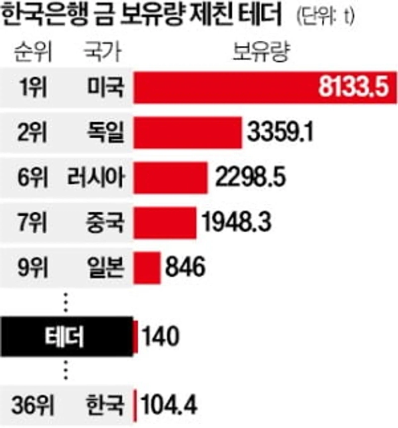 테더, 한국銀보다 금 보유량 많아