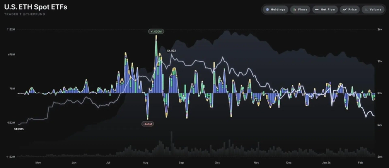 12일(현지시간) 트레이더T의 데이터에 따르면 이날 미국 이더리움 현물 ETF의 총 순유출 규모는 1억1308만달러로 나타났다.