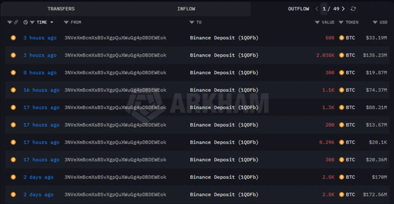 이 고래투자자는 지난 3일 동안 총 1만735개에 달하는 비트코인을 바이낸스에 입금한 것으로 나타났다.