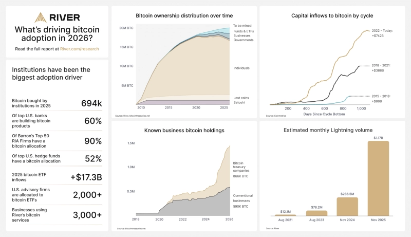 - 리버는 기업이 재무제표에 540억달러 규모 비트코인을 추가하고, 23개국이 비트코인을 보유하는 등 비트코인이 성숙 단계로 이동 중이라고 밝혔다.