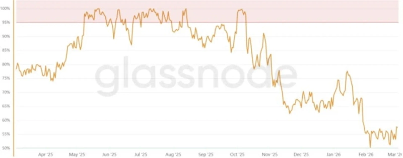 온체인 지표 역시 비슷한 분위기를 보여줍니다. 글래스노드에 따르면 현재 유통 중인 비트코인의 약 43%가 매수 가격 기준 손실 상태에 있는 것으로 나타났습니다. 1월 말 비트코인이 9만달러 부근에 있었을 당시 약 30%였던 것과 비교하면 손실 물량이 크게 늘어난 상황입니다. 이 때문에 가격이 반등하더라도 본전 매도를 노리는 물량이 출회될 가능성이 있다는 분석이 나옵니다.
