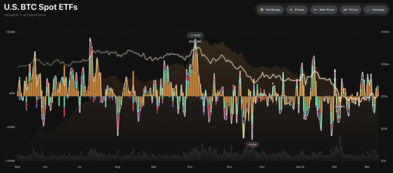 10일(현지시간) 트레이더 T(Trader T)가 공개한 데이터에 따르면 이날 비트코인 현물 ETF 전체 순유입 규모는 약 2억1866만달러로 집계됐다.