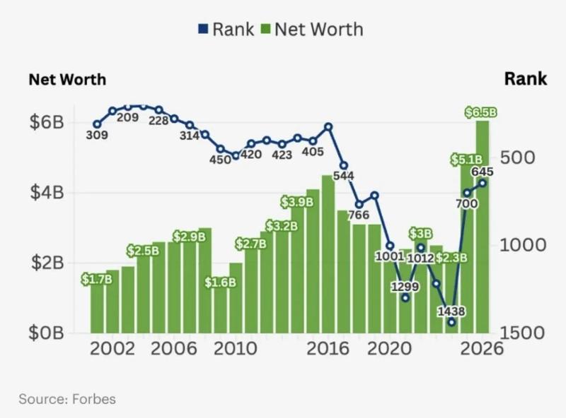 - 포브스는 트럼프 대통령 일가가 설립한 월드리버티파이낸셜(WLFI)의 토큰 판매와 지분 매각이 재산 증가의 핵심 요인이라고 밝혔다고 전했다.