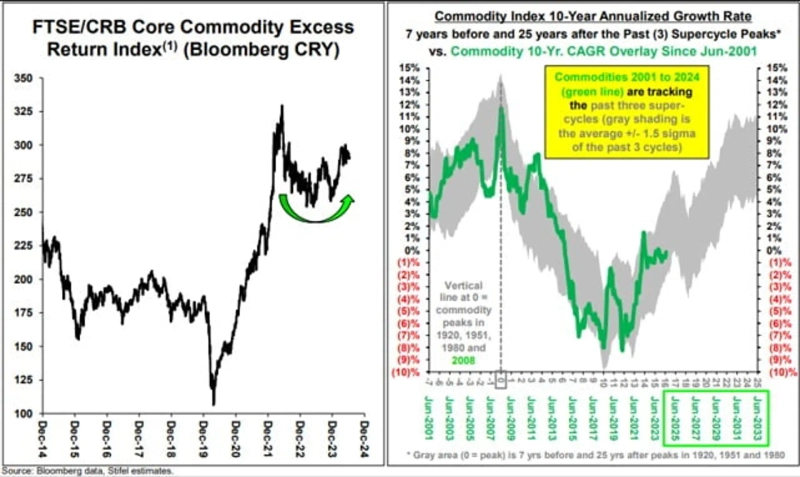 이런 체제에선 에너지가 저렴하고 효율적으로 조달할 수 있는 '상품'에서 안보를 더 우선시해야 하는 '전략 물자'로 바뀝니다. 커리는 "유가뿐 아니라 국경을 넘는 모든 원자재에는 '안보가 먼저'라는 안보 프리미엄이 붙게 될 것"이라고 주장했습니다. 2020년부터 점진적으로 시작된 원자재 가격 상승 국면, '원자재 슈퍼 사이클'이 가속화할 수 있다는 주장입니다.
