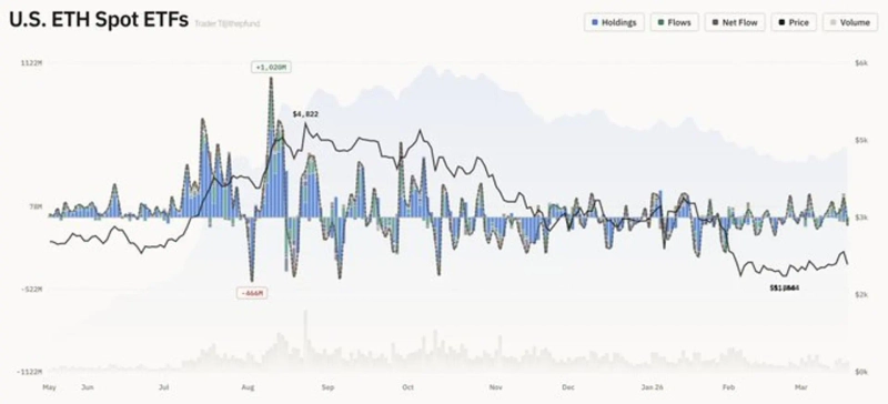 18일(현지시간) 온체인 데이터에 따르면 이더리움 ETF 총 순유출 규모는 5569만달러를 기록했다.