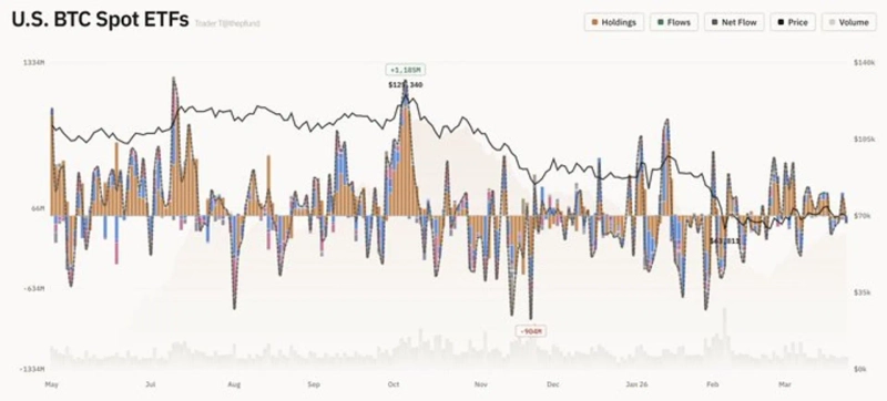 - 아크 ARKB와 인베스코 BTCO 등 일부 ETF는 자금 유출입이 없는 것으로 집계됐다고 밝혔다.