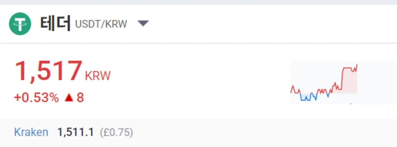 테더, 국내 가상자산 거래소서 1517원에 거래