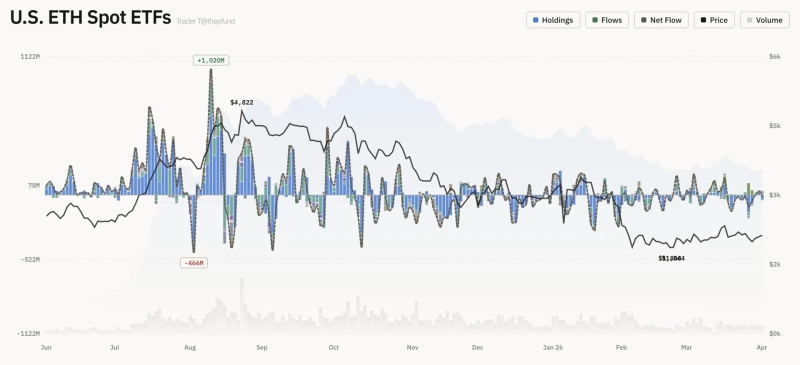 미국 이더리움(ETH) 현물 ETF에서 순유출이 발생했다.