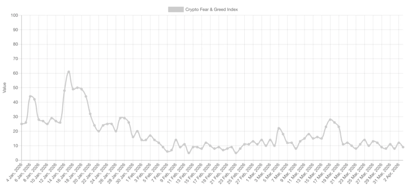 3일(현지시간) 암호화폐 분석업체 얼터너티브(Alternative)에 따르면 암호화폐 공포·탐욕 지수는 이날 기준 9로 전일(12) 대비 3포인트 하락했다. 공포·탐욕 지수는 수치가 낮을수록 투심이 위축됐다는 뜻이다. 해당 지수는 지난달 19일부터 이날까지 약 2주 연속 '극단적 공포' 구간에 머물렀다.