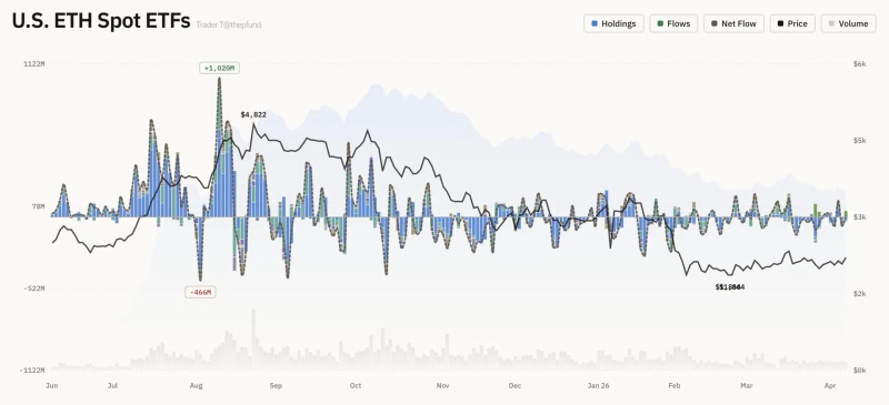 8일(현지시간) 트레이더 T 집계 데이터에 따르면 이더리움 ETF는 총 1384만달러 순유입을 기록했다.