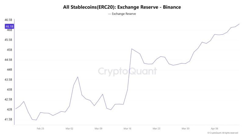 12일(현지시간) 크립토퀀트 기고자 크립토온체인CryptoOnchain) 따르면 바이낸스의 ERC-20 기반 스테이블코인 보유량은 최근 약 463억달러 수준까지 상승했다. 이는 2월 초 이후 가장 높은 수준으로, 2월 저점 대비 약 50억달러 규모의 유동성이 거래소로 재유입된 것으로 분석된다.