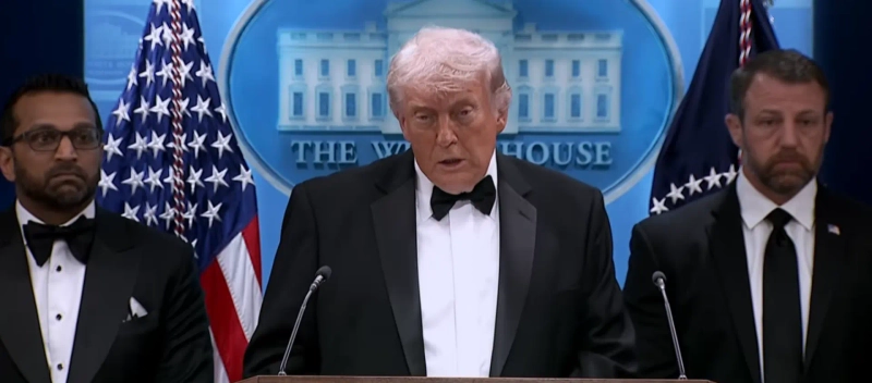 25일(현지시간) 백악관에서 진행된 브리핑에서 트럼프 대통령은 "무장한 용의자가 여러 개의 무기를 들고 보안 구역을 향해 돌진했다"며 "비밀경호국과 법 집행기관이 매우 빠르고 용감하게 대응했다"고 말했다. 그는 "용의자는 이미 제압됐으며 체포된 상태"라고 밝혔다.