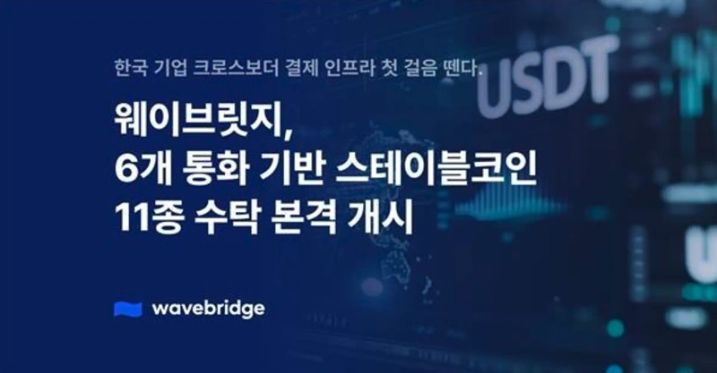 웨이브릿지, 6개 통화 기반 스테이블코인 11종 수탁 지원 개시