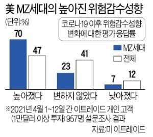 미국의 투자플랫폼 이트레이드에 따르면 18~34세 개인 투자자의 70%가 코로나 이후 자신의 ‘리스크 내성’이 더 높아졌다고 답했다. 전체 개인 응답률 47%보다 월등히 높다. 한국도 추세는 같다.