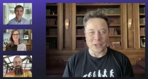머스크는 22일 오전 3시(한국시간) 비트코인 콘퍼런스 '더 B 워드'에서 열린 잭 도시 트위터·스퀘어 CEO, 캐시 우드 아크인베스트 CEO와의 생방송 토론에서 이같이 밝혔다.