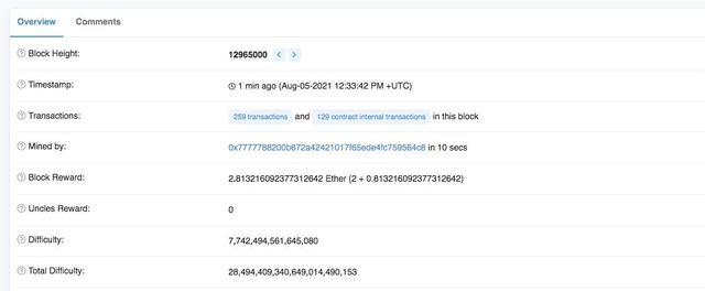 업데이트가 활성화되는 해당 이더리움 블록의 숫자는 1296만5000번째 블록이다.