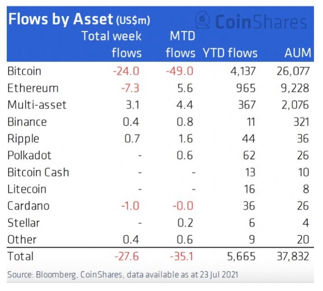 6일 가상자산(암호화폐) 전문 미디어인 데일리호들은 코인쉐어스 데이터를 인용하며 “기관 투자자들이 자금을 비트코인(BTC)과 이더리움(ETH)에서 다중 자산으로 옮기고 있다”고 밝혔다.