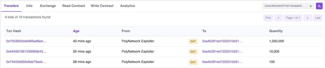해커는 한국시간 11일 오후 5시 43분경 폴리네트워크의 폴리곤(MATIC) 지갑 주소로 100USDC, 1만USDC, 100만USDC를 차례로 전송했다.