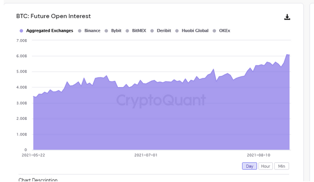 가상자산(암호화폐) 데이터 분석기업 크립토퀀트가 자체 발행하는 다이제스트(텔레그램)는 22일 “비트코인(BTC)·이더리움(ETH) 선물의 미결제약정이 지난달부터 크게 증가하고 있다. 시장 변동성이 단기적으로 커질 수 있다”며 투자자의 주의를 당부했다.