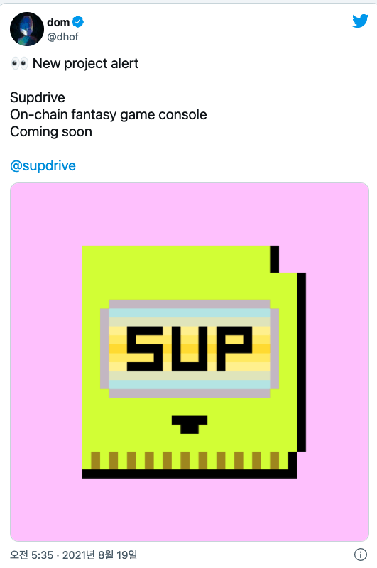 가상자산(암호화폐) 전문 미디어인 디크립트는 “동영상 공유 앱 바인(Vine)을 공동창립한 돔 호프먼(Dom Hofmann)이 이더리움 기반 대체불가토큰(NFT) 비디오 게임플랫폼인 서프드라이브(Supdrive)를 개발하고 있다”고 22일 보도했다.