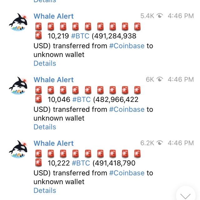 웨일얼럿에 따르면 세 건의 이체 모두 코인베이스에서 익명의 지갑 주소로 전송된 것으로 추정된다.