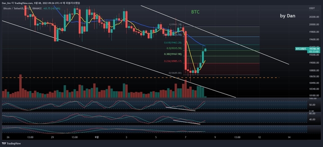 8일 크립토퀀트 분석가 단(Dan)은 자신의 트위터를 통해 "비트코인이 1만8500달러까지 조정분의 61.8%를 되돌리는 모습을 보여줬다. 이는 20일 이동평균선에서 저항을 받은 것"이라고 분석했다.
