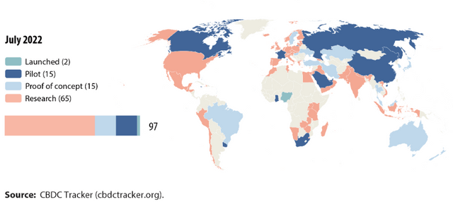 보고서에 따르면 해당 국가 중 2개 국가(나이지리아, 바하마)는 이미 CBDC 출범을 완료한 상태다.