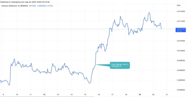 이더리움(ETH) 머지(Merge·PoS 전환) 재료가 소멸된 후, 인터체인 네트워크 코스모스(ATOM)에 투자자들의 관심이 옮겨가고 있다는 의견이 나왔다.