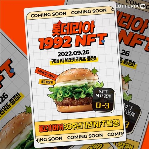 롯데GRS가 운영하는 햄버거 프랜차이즈 롯데리아가 불고기버거 출시 30주년을 맞이해 '롯데리아1992NFT'를 오는 26일 발행한다고 23일 밝혔다.