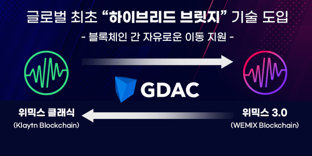 피어테크가 운영하는 가상자산(암호화폐) 거래소 지닥(GDAC)은 위믹스 클래식과 위믹스 3.0 메인넷 블록체인 사이에 양방향 스왑이 가능한 '하이브리드 브릿지' 기술을 선보인다고 6일 밝혔다.
