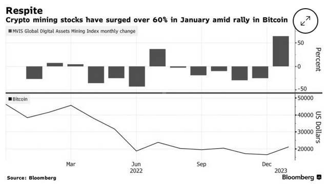 앞서 가장 큰 채굴업체 코어 사이언티픽은 작년 12월 파산을 선언했으며, 라이엇 등 일부 채굴업체는 작년 유동성을 확보하기 위해 채굴한 코인을 대량 매도했다.