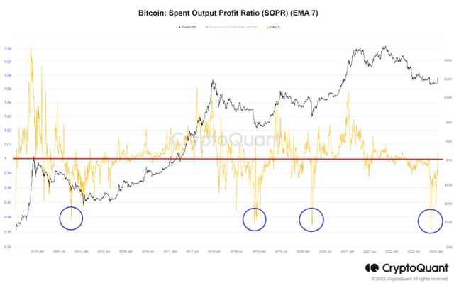 18일 온체인 분석 업체 크립토퀀트의 저자 Woominkyu는 기고문을 통해 "비트코인이 약 3개월에서 6개월 동안 바닥을 다지고 상승장을 준비 할 가능성이 높다"면서 "SOPR(홀더들이 이득 혹은 손실을 보고 판매하고 있는지 여부를 보여주는 지표)가 1.0 이상으로 회복할 것"이라고 전망했다.