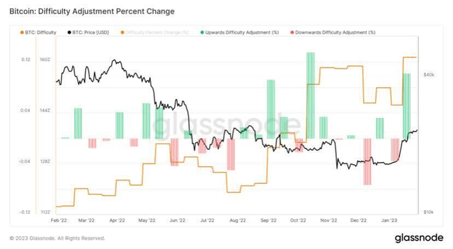 다만 매체는 글래스노드 데이터를 인용해 지난 12개월 동안 채굴 난이도의 변화는 비트코인 가격과 상관관계가 낮은 것으로 분석했다.