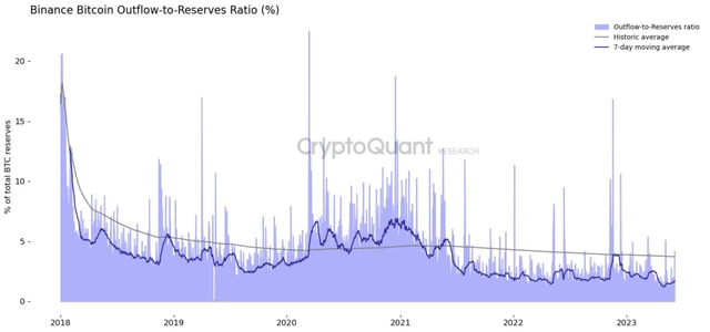 미국 증권거래위원회(SEC)의 바이낸스 제소 발표 이후 바이낸스에서 대규모 비트코인(BTC) 및 이더리움(ETH) 인출이 발생한 가운데, 이번 순유출 규모는 거래소가 보유한 준비금 규모보다 적다는 분석이 나왔다.