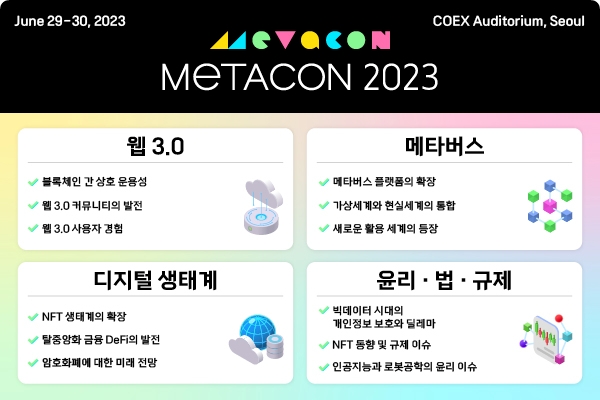 아시아 최대 규모 웹3.0 컨퍼런스 '2023 메타콘', 이달 29일 코엑스서 개최