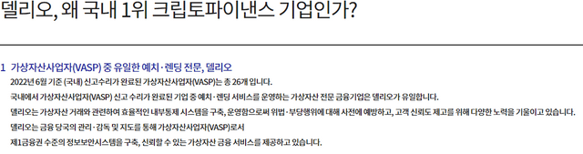 특히 델리오는 지난해 2월 12일자로 금융당국에 가상자산사업자(VASP) 등록까지 완료한 업체다. 가상자산사업자 신고 수리를 위해서는 정보보호관리체계(ISMS) 인증, 실명확인 입출금계정, 대표자 및 임원의 자격요건 등 일정 요건을 갖추고 금융위원회 금융정보분석원(FIU)을 통해 이를 인증받아야 한다.